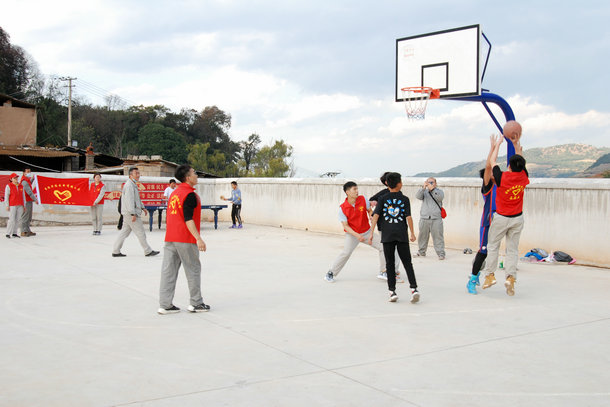 活動(dòng)當(dāng)天,村民活動(dòng)室人頭攢動(dòng),身穿紅馬甲的志愿者向村民發(fā)放防范電信詐騙、疫情防控知識(shí)宣傳手冊(cè);開展黨的十九屆六中全會(huì)精神宣講,創(chuàng)文、愛國衛(wèi)生知識(shí)問答;走訪慰問70歲以上的老人,并為村民送上了該公司書法協(xié)會(huì)會(huì)員書寫的新春祝“福”,以及一批文體用品?;@球場上、乒乓球桌前,吸引了眾多老勒村民前來觀看和吶喊助威,友誼賽豐富村民文化生活,增進(jìn)民族團(tuán)結(jié)情。