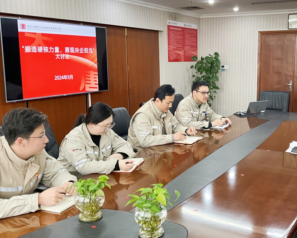 中國電力網(wǎng)訊(通訊員 孫靜嫻) “鍛造硬核力量 展現(xiàn)央企擔(dān)當(dāng)”大討論活動開展以來,浙江大唐烏沙山發(fā)電有限責(zé)任公司將大討論活動與中心工作緊密結(jié)合,研究制定活動實施方案,明確活動時間節(jié)點,扎實推進大討論活動走深走實。