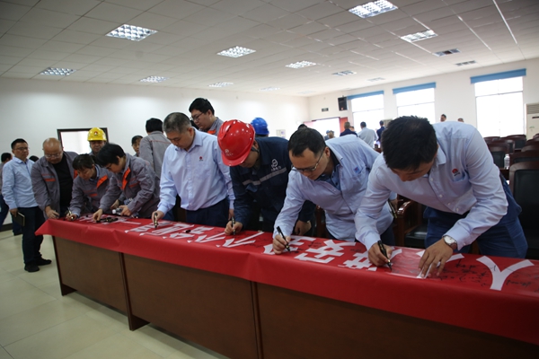 該公司各級管理人員、生產(chǎn)班組及外委單位代表70余人參加了啟動會。會后舉行了安全生產(chǎn)月承諾簽名活動,全體參會人員在印有“人人講安全,個(gè)個(gè)會應(yīng)急——暢通生命通道”活動主題的橫幅上鄭重簽名、堅(jiān)定承諾,全面拉開活動序幕。