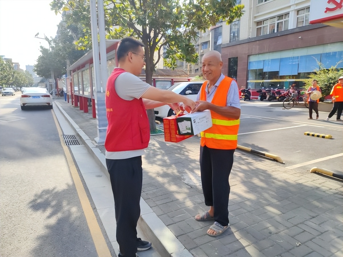 活動中,志愿者們首先對他們不畏高溫天氣,仍然堅(jiān)守崗位工作、默默付出致以誠摯的敬意和感謝。隨后,將牛奶、涼茶、礦泉水等慰問物資送到一線環(huán)衛(wèi)工作人員手中,同時(shí)囑咐大家要提高自保互保意識,做好防暑降溫措施,確保勞逸結(jié)合、身體康健。此次活動,讓堅(jiān)守在烈日與高溫下的環(huán)衛(wèi)工人們感受到夏日的絲絲清涼。