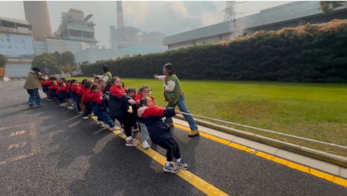隨著研學(xué)活動(dòng)接近尾聲,南熱電廠的叔叔們與小朋友們展開了一場趣味拔河比賽。比賽現(xiàn)場,氣氛熱烈而歡快,小朋友們喊著稚嫩卻響亮的口號(hào),小臉憋得通紅,奮力往后拉拽。南熱電廠的叔叔們也不敢有絲毫懈怠,他們巧妙地控制著力道,既給予孩子們對(duì)抗的體驗(yàn),又確保比賽在安全有序的氛圍中進(jìn)行。老師和其他工作人員則組成了熱情的啦啦隊(duì),加油聲、助威聲此起彼伏,歡聲笑語回蕩在整個(gè)場地,大家共同度過了一段美好的童趣時(shí)光。
