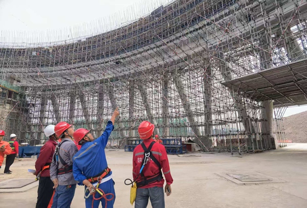 檢查組先后來到2號涼水塔、5、6號鍋爐、生活污水處理池等施工區(qū)域,主要對全場腳手架搭設拆除情況、高處作業(yè)人員安全防護用品佩戴使用情況、作業(yè)區(qū)域平臺、欄桿、安全網(wǎng)、水平繩設置情況等進行了全面檢查,就現(xiàn)場檢查發(fā)現(xiàn)的安全文明施工問題提出了整改要求,并就如何改善施工作業(yè)環(huán)境、提高作業(yè)效率、全面提升文明施工水平等與各項目負責人進行了溝通交流。