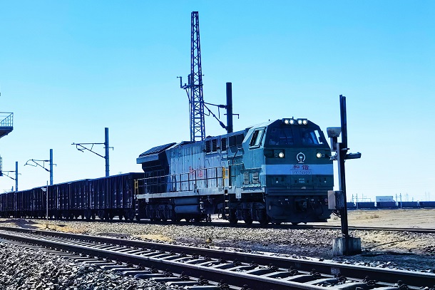 圖為滿載疆煤的保供列車從紅沙泉煤礦駛出