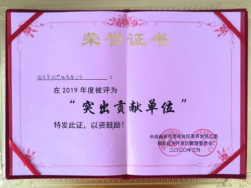 中國(guó)電力網(wǎng)訊 4月28日,南京市雨花經(jīng)濟(jì)開發(fā)區(qū)管委會(huì)婁杰書記一行四人,蒞臨南京華潤(rùn)熱電有限公司并向公司授予雨花經(jīng)濟(jì)開發(fā)區(qū)2019年度“突出貢獻(xiàn)單位”獎(jiǎng)牌和證書,對(duì)公司2019年在開發(fā)區(qū)社會(huì)、經(jīng)濟(jì)發(fā)展等工作中做出的突出表現(xiàn)進(jìn)行表彰??偨?jīng)理丁建民代表公司領(lǐng)取了獎(jiǎng)牌。