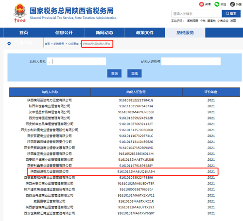 中國(guó)電力網(wǎng)訊 日前,在國(guó)家稅務(wù)總局陜西省稅務(wù)局開展的2021年度納稅信用等級(jí)評(píng)定工作中,陜投電力運(yùn)營(yíng)榮獲“陜西省A級(jí)納稅人”榮譽(yù)稱號(hào)。