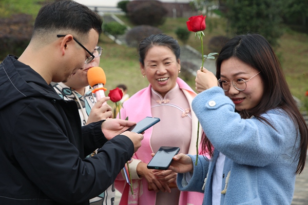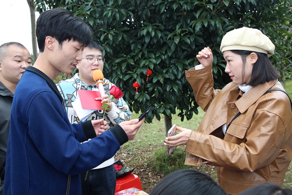 在大家的鼓勵(lì)和見證下,有不少青年勇敢地站上舞臺(tái),展示自我,表達(dá)心意,為愛牽手,手持玫瑰向心儀的異性表達(dá)愛意,多位男女現(xiàn)場(chǎng)交換微信,互換聯(lián)系方式,愿意進(jìn)一步深入了解。