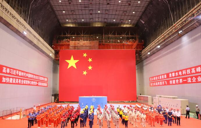2020年5月22日,從進水口蜂擁而入的金沙江水通過蝸殼將自己狠狠得拍打在水輪機上,整個七號機組緩緩轉動,龐大而冰冷的機器開始展現出生命的活力。