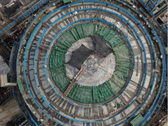 我國自主知識產(chǎn)權(quán)“華龍一號”核電站擁有一個顯著特點(diǎn)——使用大容積雙層安全殼,實現(xiàn)功能分離,內(nèi)殼主要作用是抵御各種事故下及可能的嚴(yán)重事故下內(nèi)部的高溫高壓,外殼主要作用是抵御包括飛機(jī)撞擊在內(nèi)的各種外部災(zāi)害的作用,保護(hù)內(nèi)殼及其內(nèi)部結(jié)構(gòu)不受影響。此次完成封頂?shù)氖莾?nèi)殼穹頂,其半徑31米、壁厚1米、高約10米,需要1785.6立方米的混凝土,采用分層澆筑工藝。