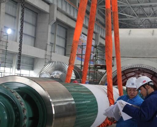 作業(yè)人員正在進(jìn)行轉(zhuǎn)子檢查試吊、調(diào)整轉(zhuǎn)子水平
