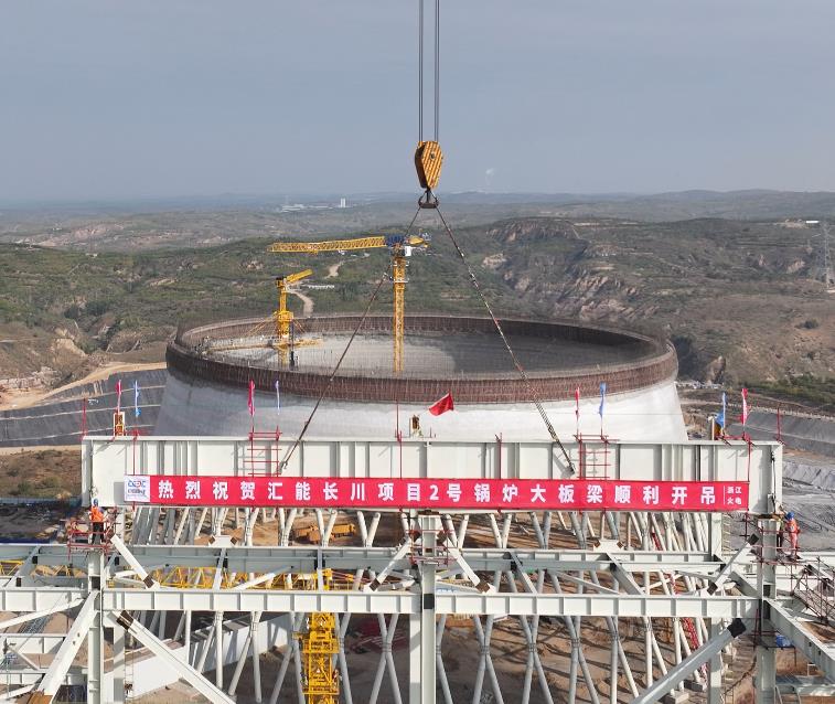 10月5日,中國能建浙江火電承建的內蒙古匯能長川項目2號機組鍋爐大板梁吊裝就位。