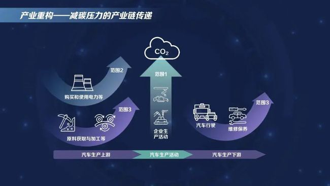 另外,產(chǎn)業(yè)重構(gòu)方面,減碳?jí)毫Φ漠a(chǎn)業(yè)鏈傳遞也很突出?,F(xiàn)在越來(lái)越多的全球性大公司自主承諾減排,原來(lái)對(duì)一家企業(yè)到底排多少碳主要看它的生產(chǎn)過(guò)程,但現(xiàn)在已經(jīng)擴(kuò)大到產(chǎn)業(yè)鏈。一個(gè)產(chǎn)業(yè)鏈包括上游的原料和下游產(chǎn)品的應(yīng)用,把上下游綜合考慮起來(lái),就會(huì)形成減碳?jí)毫Φ漠a(chǎn)業(yè)鏈傳遞。比如,中國(guó)現(xiàn)在是世界上最大的小汽車生產(chǎn)和消費(fèi)市場(chǎng),每年產(chǎn)銷2500—3000萬(wàn)輛,這個(gè)量是美國(guó)和日本加起來(lái)的總和,這么大的量,對(duì)鋼材會(huì)有比較大的需求。一家承諾了整個(gè)產(chǎn)業(yè)鏈上要減碳的跨國(guó)公司在生產(chǎn)小汽車時(shí),就會(huì)要求上游生產(chǎn)鋼材的廠家也要跟著它減碳,這樣會(huì)形成倒逼,煉鋼廠如果達(dá)不到它的要求,它就會(huì)去找其他能達(dá)到要求的供應(yīng)商,所以在自主減排的目標(biāo)實(shí)現(xiàn)里會(huì)形成新的壓力傳遞,這是未來(lái)產(chǎn)業(yè)重構(gòu)里非常重要的驅(qū)動(dòng)因素。