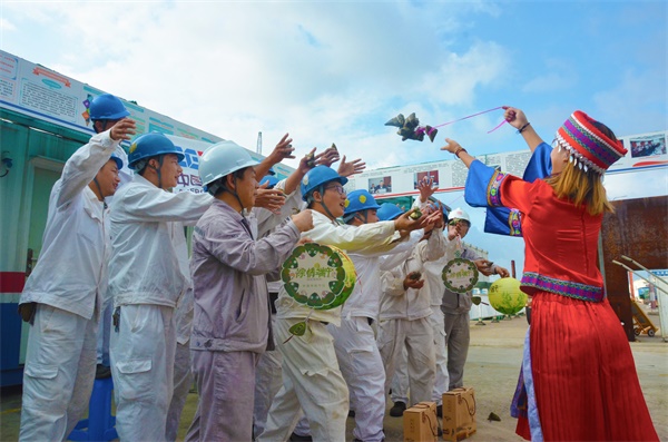 “粽情粽意,端午迎祥,堅守崗位,履職盡責……”這是中國能建安徽電建二公司防城港項目部張富班早班會上高喊口號的情景。端午前夕,身穿壯族服飾的小姑娘黃發(fā)娟將粽子串起并拋出,班組成員爭相伸手接。只見,20余名施工人員拿著粽子,剝著鴨蛋,有說有笑。端午未至,可濃濃的粽香已彌漫整個核電現場……
