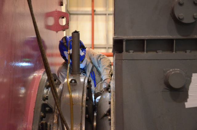 例如作為發(fā)電機大修相關項目的最后程序之一——發(fā)電機勵磁機側下端蓋回裝完成后,還需要檢修人員進入到狹窄的發(fā)電機下部縫隙中進一步檢查勘驗。此時作為宣傳人員的我只能站在汽輪機平臺上“居高臨下”地去拍攝照片,最終成像出來的,就是一個佝僂著的脊背。