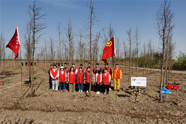 本次活動由來自江北新區(qū)財(cái)政局、建設(shè)投資集團(tuán)、綜合行政執(zhí)法總隊(duì)黨員代表,新材料科技園領(lǐng)導(dǎo)及紀(jì)工委、機(jī)關(guān)、團(tuán)工委、公用事業(yè)公司、市政綠化公司黨員、團(tuán)青代表共計(jì)百余人參加。植樹地點(diǎn)在緊鄰公司的岳子河,16塊責(zé)任區(qū)順著道路兩旁依次排開,我公司青年員工代表身著鮮亮的工裝,在春日的暖陽下顯得格外奪目。聽從園區(qū)團(tuán)工委的指揮,我公司青年代表擼起袖子就是干,一人挖坑、一人扛樹、一人扶樹、一人填土。從烈日當(dāng)空干到落日余暉,對他們來說好像就是一眨眼的工夫,一望無際的荒地上像是插上了百歲老人的生日蠟燭,兩人多高的樹木帶著點(diǎn)點(diǎn)新芽,無人問津的土地?zé)òl(fā)出了盎然生機(jī)。