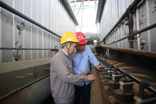 除塵布袋是袋式除塵器的心臟,布袋噴吹氣包可以吹除布袋上的灰塵,確保除塵系統(tǒng)的有效運(yùn)行。值班過程中,環(huán)保部運(yùn)行三班發(fā)現(xiàn)2號(hào)爐氣包噴吹電磁閥卡澀漏氣,脫硝專工吳文武和該班班長龍智軍立即趕赴現(xiàn)場(chǎng),他們通過“望、聞、切”等方式,觀察現(xiàn)場(chǎng)設(shè)備運(yùn)行情況、聽取閥門漏氣情況、用鐵錘敲擊管道等,仔細(xì)檢查現(xiàn)場(chǎng)噴吹氣包運(yùn)行情況,確保布袋壓差正常和除塵系統(tǒng)正常運(yùn)行。