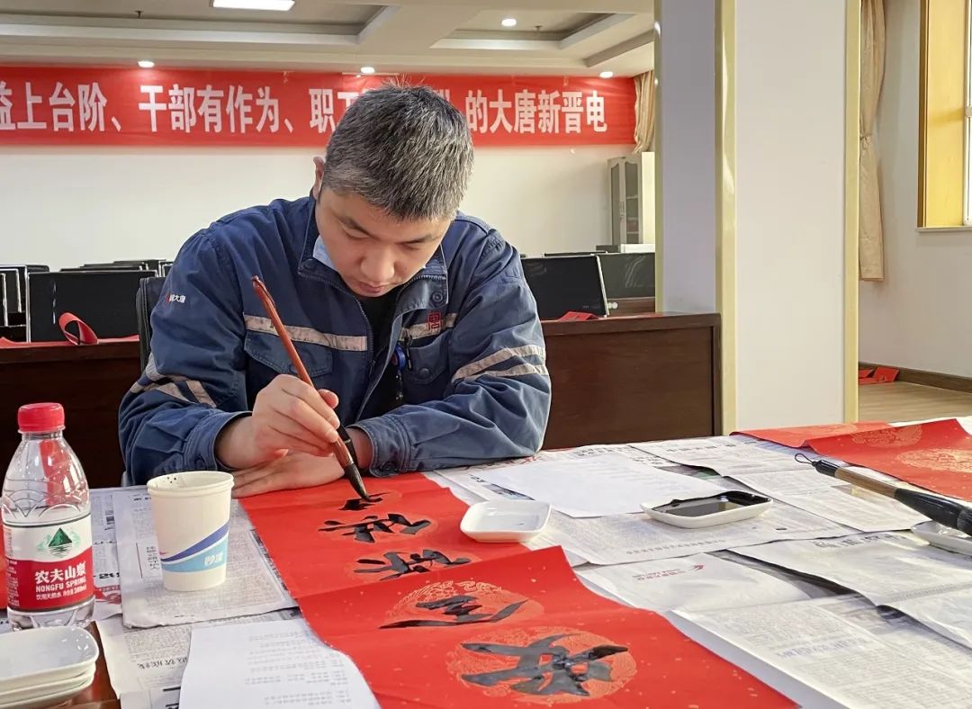 他寫(xiě)的多幅與安全生產(chǎn)相關(guān)的春聯(lián)作品被張貼在公司辦公樓門(mén)口和生產(chǎn)廠(chǎng)區(qū)各區(qū)域大門(mén)上,成為“門(mén)面擔(dān)當(dāng)”,助力營(yíng)造生產(chǎn)現(xiàn)場(chǎng)安全文化氛圍的同時(shí),也獲得電氣班“神筆馬良”的美稱(chēng)。