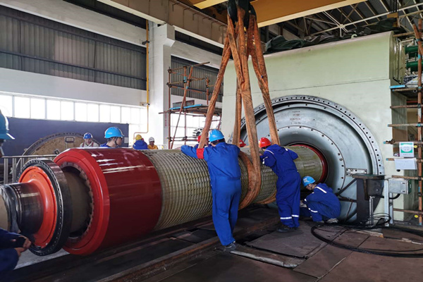上午10時(shí)10分,隨著起重指揮人員的一聲哨響,發(fā)電機(jī)穿裝轉(zhuǎn)子工作正式開始,穿裝期間,各專業(yè)人員分工有序,密切配合,時(shí)刻注意轉(zhuǎn)子與定子的間隙,及時(shí)調(diào)整轉(zhuǎn)子的傳入量和中心位置,每一步都做到精益求精。整個(gè)穿入過程中,公司各部門負(fù)責(zé)人、專工現(xiàn)場旁站監(jiān)督,協(xié)調(diào)工作,為穿裝轉(zhuǎn)子作業(yè)的順利進(jìn)行,提供了可靠保障。