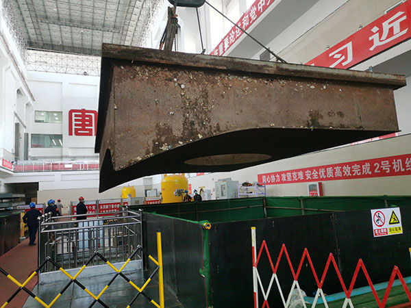 中國(guó)電力網(wǎng)訊 近日,內(nèi)蒙古大唐國(guó)際海勃灣水利樞紐開(kāi)發(fā)有限公司在緊鑼密鼓地開(kāi)展2號(hào)機(jī)組A級(jí)檢修工作,按照工期計(jì)劃安排,現(xiàn)場(chǎng)檢修工作有序推進(jìn),施工安全、進(jìn)度及質(zhì)量可控在控,開(kāi)工一周內(nèi),流道蓋板已成功吊出。