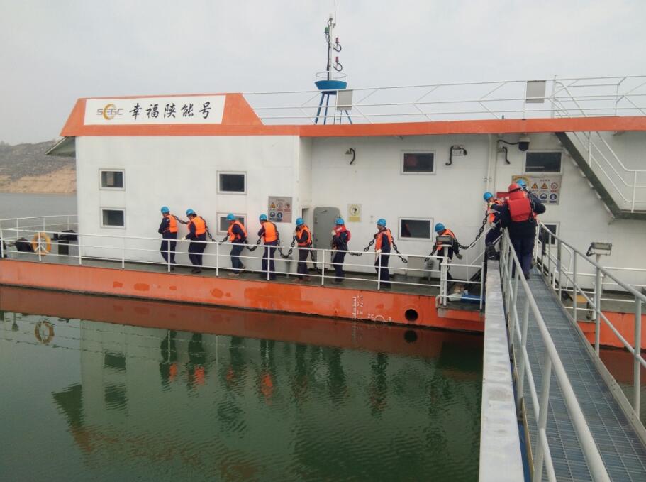 中國電力網訊 近日,陜西能源趙石畔煤電組織專業(yè)人員趕赴水源地進行取水泵船錨鏈加長工作。在工作負責人的統(tǒng)一指揮下,檢修人員協(xié)同作業(yè),克服廊橋較窄、錨鏈沉重等困難,歷時4小時,順利完成該項工作。