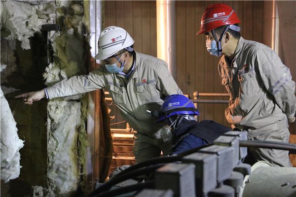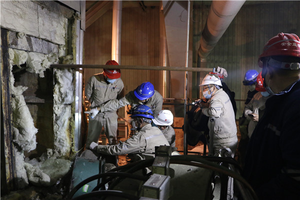 此次消缺期間室外最低氣溫達到零下20度左右,防寒防凍無疑是消缺工作的重中之重,長山廠及時切換供熱方式,利用化廠備用熱源為家屬區(qū)供熱,同時也為防寒防凍工作、機組順利啟動提供可靠保證。在此期間,各單位各負其責,全員行動,全面開展防寒防凍工作。發(fā)電部作為主體責任部門,從主任到單元長,從值班員到巡檢員,明確區(qū)域,認真排查,每小時測量廠房所有區(qū)域溫度,同時對門窗封閉、室外管路保溫等防寒防凍措施進行再次確認;設(shè)備部一方面制定方案組織相關(guān)單位消缺,一方面全面安排部署極寒天氣下的防寒防凍工作;各車間(分場)在生產(chǎn)廠房各層重要部位設(shè)置炭火爐,對熱控表管表計、電氣電子間盤柜、氨區(qū)管路進行檢查,增加伴熱帶,設(shè)置值班人員監(jiān)測環(huán)境溫度,全力以赴確保防寒防凍工作萬無一失。消缺期間,行政事務(wù)部積極做好后勤保障工作,按時準備盒飯送到現(xiàn)場,助力消缺工作順利完成。