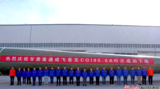 近日,甘肅重通成飛新材料有限公司首支CGI95.0A風(fēng)電葉片成功下線,標(biāo)志著該公司在新產(chǎn)品試制領(lǐng)域取得新突破,將為帶動大兆瓦級風(fēng)電葉片技術(shù)攻關(guān)和實現(xiàn)新能源協(xié)同配套起到積極推動作用。
