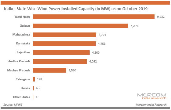 政府設(shè)定了到2022年安裝60 GW風(fēng)力發(fā)電能力的目標(biāo)。根據(jù)MNRE,印度的累計(jì)風(fēng)力發(fā)電安裝量已突破37 GW大關(guān),到2019年10月為37,090.03 MW。