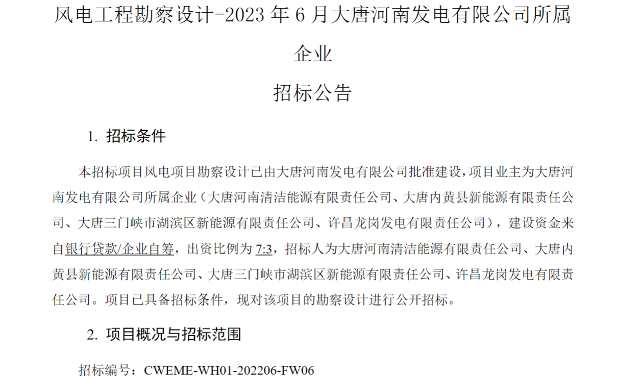 公告顯示,此次招標包括四個風(fēng)電項目。