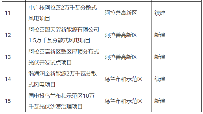 5月24日,內(nèi)蒙古阿拉善盟行政公署發(fā)布2022年重點項目中已審批新能源項目一覽表。