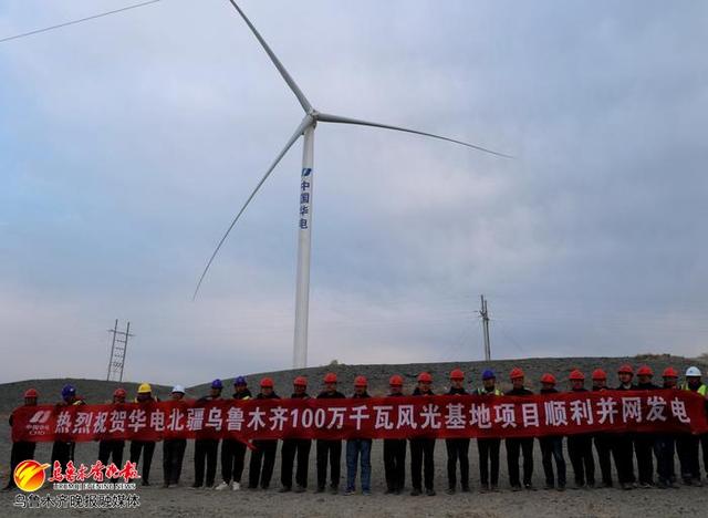 華電北疆烏魯木齊100萬(wàn)千瓦風(fēng)光電基地項(xiàng)目首批162.1兆瓦風(fēng)機(jī)并網(wǎng)發(fā)電。資料圖片