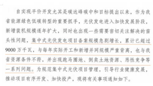 為了證明這一傳聞的真實性,一些媒體還提到了2022年發(fā)布的文件《關(guān)于規(guī)范集中式光伏電站項目管理有關(guān)事項的通知》。該通知嚴厲指出,集中式光伏發(fā)電項目備案規(guī)模迅速增長,已經(jīng)超過9000萬千瓦,與實際開工和新增并網(wǎng)規(guī)模嚴重不符,也與廣東省的資源條件不匹配,出現(xiàn)了跑馬圈地、倒賣土地資源、惡性競爭等一系列問題。