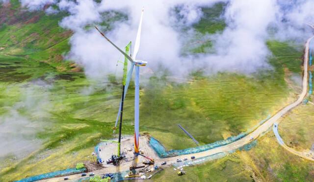 世界屋脊之上,西藏八宿10萬千瓦保障性并網(wǎng)風電項目正在火熱建設(shè),助力點亮萬家燈火。項目廠區(qū)海拔最高達5200米,總裝機容量為100兆瓦,是目前全球海拔最高的風電項目。