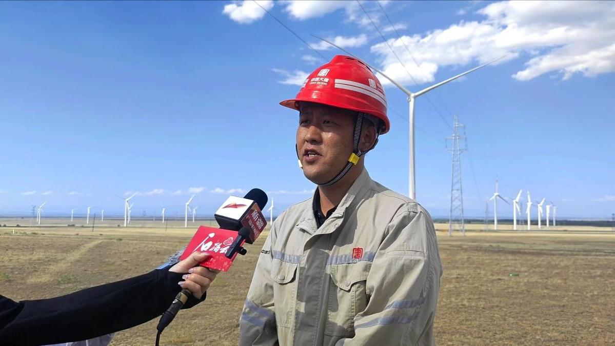 圖:大唐托里縣清潔能源有限公司老風(fēng)口風(fēng)電項目副經(jīng)理祁景華介紹風(fēng)力發(fā)電項目進(jìn)展