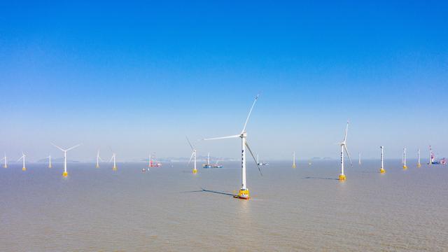 南區(qū)并網(wǎng)發(fā)電后,華電玉環(huán)1號海上風電場南北區(qū)32臺風電機組建成投用后每年可向浙江省提供清潔電能約6.5億度,相當節(jié)約標煤21.9萬噸,減少二氧化碳排放57.4萬噸。