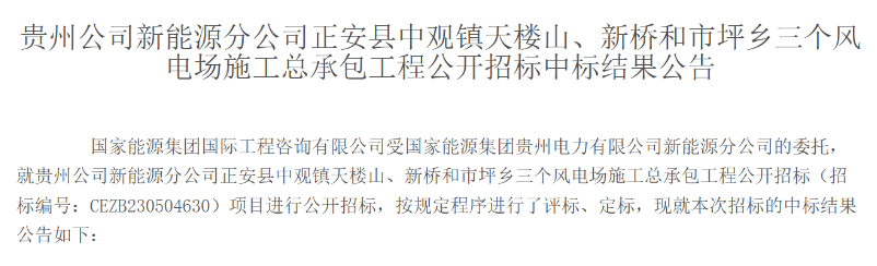 公告顯示,中國電建集團貴州工程有限公司成功中標(biāo)該項目,中標(biāo)價格為29242.222800萬元。