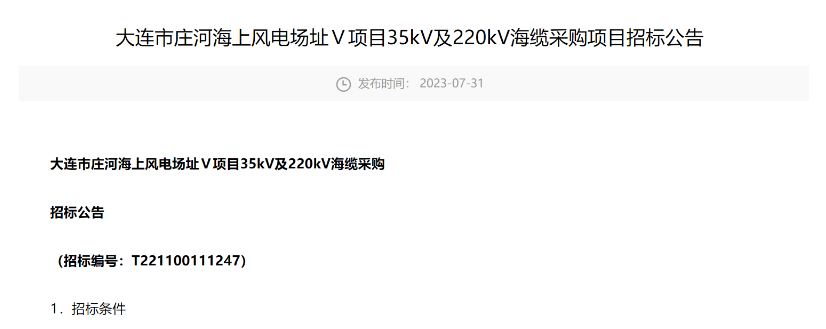 交貨計(jì)劃:賣方應(yīng)保證35kV海纜2023年9月30日前具備交貨條件,供貨需滿足現(xiàn)場(chǎng)施工進(jìn)度要求,具體時(shí)間、批次及數(shù)量以買(mǎi)方通知為準(zhǔn);220kV海纜2023年11月15日前具備交貨條件,具體時(shí)間以買(mǎi)方通知為準(zhǔn);220kV陸纜2023年9月30日前具備交換條件,具體時(shí)間以買(mǎi)方通知為準(zhǔn)。