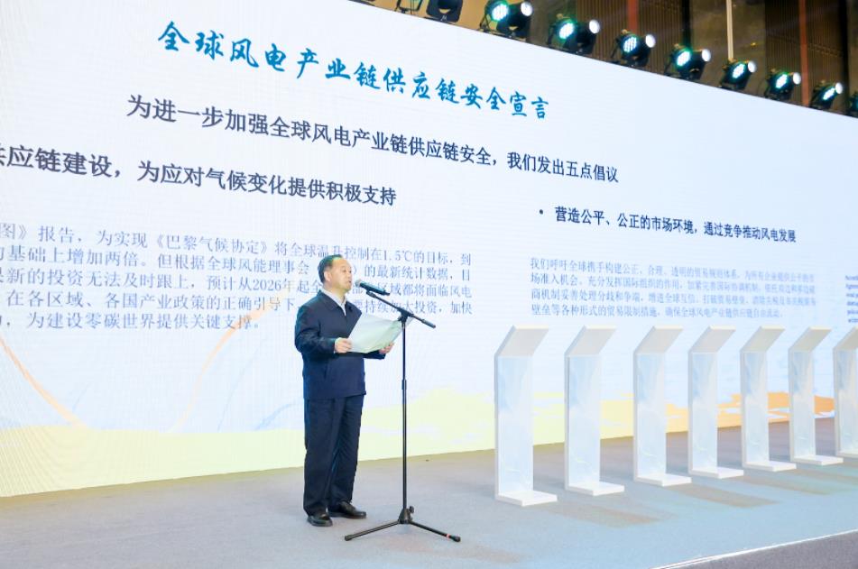 中國職工技術協會副理事長、電力專委會名譽會長畢亞雄,代表全體嘉賓莊嚴宣讀了《全球風電產業(yè)鏈供應鏈安全宣言》。