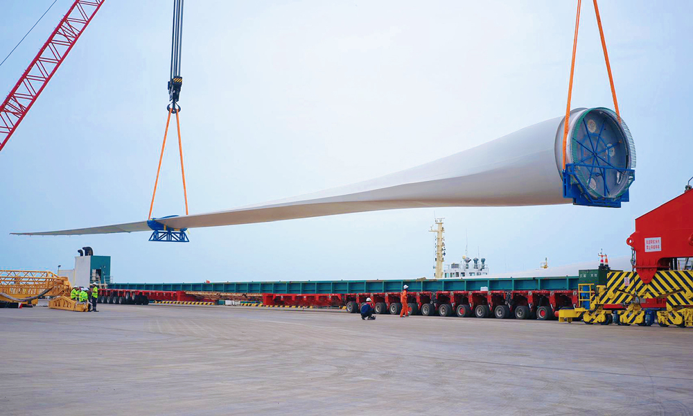 該葉片運(yùn)輸難度極高,從工廠到港口的運(yùn)輸路線如“障礙賽”,高壓線、橋梁、急彎層層阻隔,發(fā)運(yùn)團(tuán)隊(duì)提前半年實(shí)地勘測(cè),多次復(fù)勘定制“分段式護(hù)送”方案。