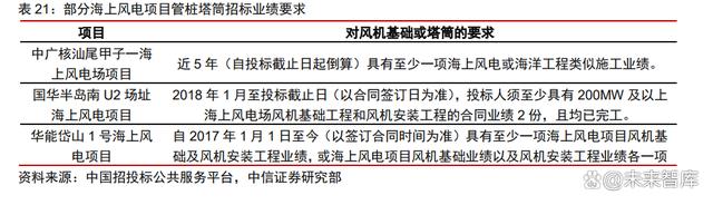 經(jīng)營(yíng)規(guī)模和歷史業(yè)績(jī)是業(yè)主招標(biāo)的重要考評(píng)依據(jù),頭部企業(yè)優(yōu)勢(shì)明顯。塔筒、樁基及 導(dǎo)管架屬于大型鋼結(jié)構(gòu)產(chǎn)品,日常運(yùn)行環(huán)境惡劣,行業(yè)內(nèi)一般要求該等產(chǎn)品可靠使用壽命 在 20 年以上。運(yùn)行維護(hù)周期長(zhǎng)疊加風(fēng)電場(chǎng)建設(shè)前期資本投入較大、安裝施工成本較高等 因素,下游客戶在供應(yīng)商評(píng)價(jià)及選擇過(guò)程中,會(huì)優(yōu)先考慮具有較大經(jīng)營(yíng)規(guī)模且歷史業(yè)績(jī)穩(wěn) 定的企業(yè),大部分海上基礎(chǔ)和塔筒項(xiàng)目招標(biāo)通常要求近 5 年的歷史業(yè)績(jī)。