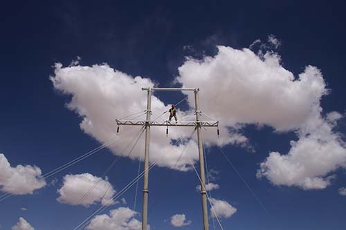 項(xiàng)目架空線路桿塔共計(jì)668基,12種桿塔型式。桿塔是在35kV架空線路架設(shè),線路總長(zhǎng)度約122.21km,塔高為15-21米,屬于高空作業(yè)。施工現(xiàn)場(chǎng)干旱炎熱,沙塵暴和冰雹也常常輪番“光顧”,給施工進(jìn)度和安全管理帶來(lái)不小的挑戰(zhàn)。在桿塔組立作業(yè)前,項(xiàng)目部組織協(xié)作隊(duì)伍召開專題安全會(huì),施工隊(duì)長(zhǎng)徐少帥堅(jiān)持對(duì)現(xiàn)場(chǎng)的施工操作人員進(jìn)行詳細(xì)的安全、技術(shù)、質(zhì)量交底工作;質(zhì)量安全科林周彬堅(jiān)持每天現(xiàn)場(chǎng)巡查,要求高空作業(yè)人員必須持證上崗,且具有合格的體檢報(bào)告;施工過(guò)程中,施工現(xiàn)場(chǎng)拉起安全警戒線、懸掛安全警示標(biāo)識(shí),安全員全程旁站監(jiān)督,確保現(xiàn)場(chǎng)施工安全質(zhì)量可控。
