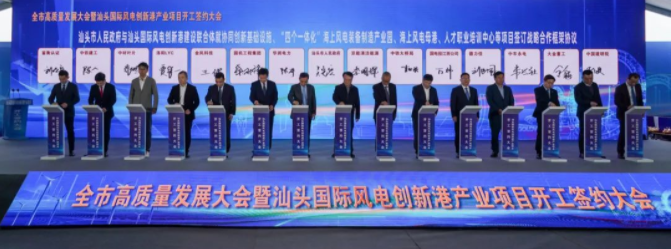 大會云集了金風科技、中車永濟、德力佳、中材科技、北京鑒衡、華潤電力、京能集團等國內(nèi)海上風電裝備制造龍頭企業(yè)及能源企業(yè),為海上風電母港、“四個一體化”海上風電裝備制造產(chǎn)業(yè)園、廣東省臨海試驗基地項目等一批海上風電產(chǎn)業(yè)關(guān)鍵環(huán)節(jié)重點項目舉辦了集中簽約開工儀式,正式拉開了汕頭國際風電創(chuàng)新港建設(shè)熱潮!