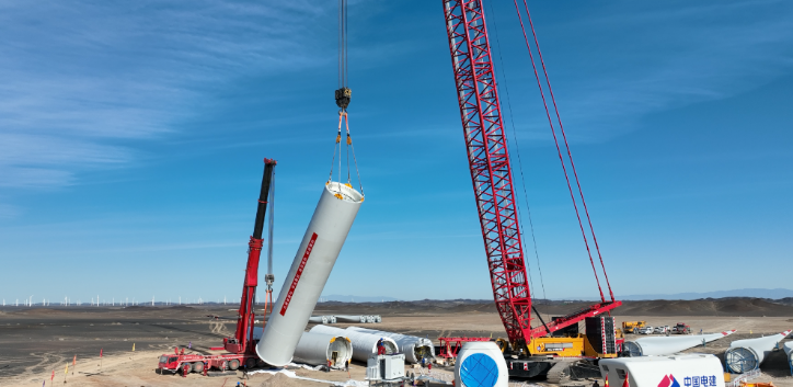 10月3日,由水電十一局牽頭總包承建的電建集團投資建設的陸上最大風電項目——新疆巴里坤60萬千瓦風儲項目首臺風機塔筒成功開始吊裝。
