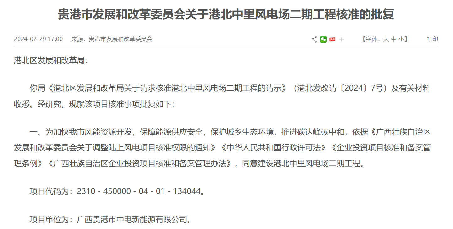 近日,廣西貴港市發(fā)展和改革委員會發(fā)布《關(guān)于港北中里風(fēng)電場二期工程核準(zhǔn)的批復(fù)》,同意建設(shè)噶項目。
