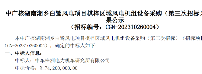 公告顯示,中車株洲電力機(jī)車研究所有限公司成功中標(biāo)該項目,中標(biāo)價格為74,200,000.00元。