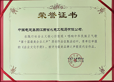 六十七年崢嶸歲月,六十七載光輝歷程,江西水電沉積著不同時期“江水人”的深刻記憶,繼承和發(fā)揚(yáng)優(yōu)秀的企業(yè)文化精神。“十四五”期間,江西水電在轉(zhuǎn)型升級與量質(zhì)提升的重要時期,大力實(shí)施“文化強(qiáng)企”戰(zhàn)略,系統(tǒng)梳理和提升江水文化理念體系,量身打造“理念、行為、視覺、制度”等系統(tǒng)文化;大力踐行“匠造時代精品 澤潤美好生活”的企業(yè)使命,推動“整合資源、搭建平臺、開放合作、共生共贏”的經(jīng)營理念的融合,注重把“江水文化”底蘊(yùn)融入生產(chǎn)經(jīng)營,以文化建設(shè)助推品牌建設(shè),極大提升企業(yè)知名度、美譽(yù)度。
