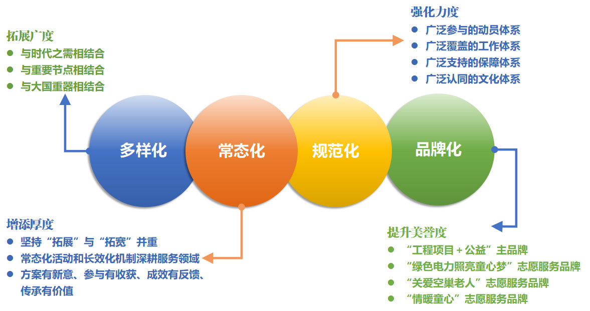 以品牌化提升美譽度。江蘇院志愿服務(wù)堅持以品牌化擴大影響力,在實踐中提煉出“工程項目+公益”主品牌和三大子品牌的“1+3”品牌矩陣。聚焦重點工程,創(chuàng)建“綠色電力照亮童心夢”服務(wù)品牌;聚焦老年群體,打造“關(guān)愛空巢老人”服務(wù)品牌;聚焦少兒群體,沉淀出“情暖童心”服務(wù)品牌。