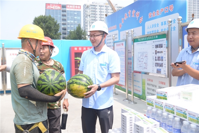 慰問(wèn)中,領(lǐng)導(dǎo)班子成員親手將藿香正氣水等防暑降溫慰問(wèn)品送到奮戰(zhàn)在一線的工人手上,黨支部書(shū)記、項(xiàng)目指揮長(zhǎng)叢培建強(qiáng)調(diào),我們要切實(shí)把工人的身體健康放在首位,不斷改善一線勞動(dòng)者的工作條件,嚴(yán)格落實(shí)防暑降溫保障工作,確保奮戰(zhàn)在一線的勞動(dòng)者安全度夏,保障生產(chǎn)工作有序開(kāi)展,積極創(chuàng)造更好的勞動(dòng)環(huán)境,切實(shí)維護(hù)好工人合法權(quán)益。