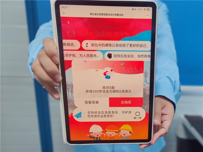 在項目工會的有力組織下,隨著時間的推移,在這連續(xù)每日的答題過程中,大家的關(guān)注點也發(fā)生了有趣的變化。從剛開始單純地比較分數(shù),逐漸發(fā)展到在追求滿分的同時比拼答題速度。8月20日是正式賽的最后一次答題,正如常言所說,21天左右能夠養(yǎng)成一個習(xí)慣。這次長時間不間斷的堅持答題,讓大家在應(yīng)急管理普法知識方面有了深刻的認識和顯著的提升。