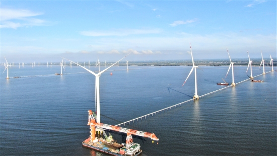 風(fēng)從海上來(lái),吹來(lái)源源不斷的綠色能源。由中國(guó)電建承建的中企境外首個(gè)海上風(fēng)電EPC工程——薄寮三期、朔莊一期海上風(fēng)電項(xiàng)目,57臺(tái)國(guó)產(chǎn)“大風(fēng)車(chē)”,在92平方公里的海域內(nèi)勻速旋轉(zhuǎn),年上網(wǎng)電量約4.9億千瓦時(shí),可滿足當(dāng)?shù)?5萬(wàn)居民的平均年用電需求。