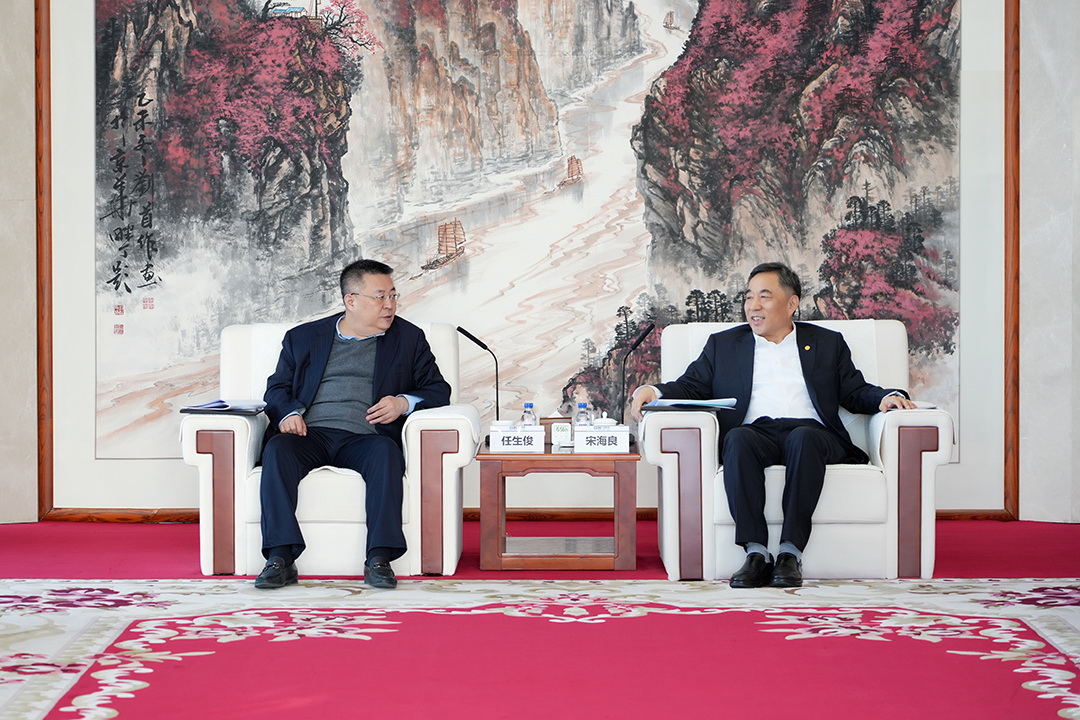 宋海良對任生俊一行的到來表示歡迎,對中國進(jìn)出口銀行長期以來給予中國能建的關(guān)心、幫助和支持表示感謝,并簡要介紹了中國能建改革發(fā)展情況和業(yè)務(wù)優(yōu)勢。他表示,當(dāng)前中國能建正深入落實“四個革命、一個合作”能源安全新戰(zhàn)略,充分發(fā)揮能源電力全產(chǎn)業(yè)鏈一體化與核心技術(shù)優(yōu)勢,緊緊圍繞“創(chuàng)新、綠色、數(shù)智、融合”核心發(fā)展理念,加快推動“四大轉(zhuǎn)型”,系統(tǒng)構(gòu)建新能源、新基建、新產(chǎn)業(yè)、新材料“四新”能建平臺。近年來,公司堅持國際業(yè)務(wù)優(yōu)先優(yōu)質(zhì)協(xié)同發(fā)展,構(gòu)建“一體兩翼”海外發(fā)展體系,勇當(dāng)高質(zhì)量共建“一帶一路”的主力軍、排頭兵、先鋒隊,取得豐碩成果。中國進(jìn)出口銀行是我國外經(jīng)貿(mào)支持體系的重要力量和金融體系的重要組成部分,中國能建主營業(yè)務(wù)、全球布局與中國進(jìn)出口銀行支持區(qū)域領(lǐng)域高度契合,希望雙方在國際業(yè)務(wù)、跨境咨詢服務(wù)、戰(zhàn)略性新興產(chǎn)業(yè)、綠色金融產(chǎn)品等重點業(yè)務(wù)領(lǐng)域深化務(wù)實合作,全面加強(qiáng)重點區(qū)域、重點行業(yè)、重點項目合作,進(jìn)一步探索金融合作模式與金融產(chǎn)品創(chuàng)新,提升雙方合作的前瞻性、針對性,攜手培育新質(zhì)生產(chǎn)力,扎實推動高質(zhì)量發(fā)展。