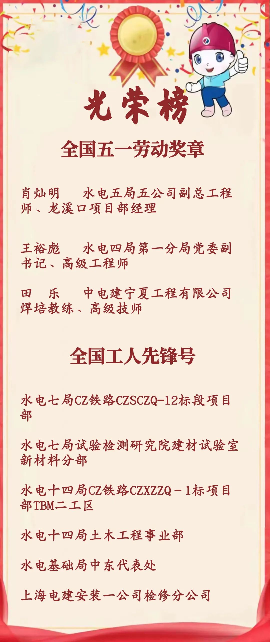 全國五一勞動獎名單揭曉!中國電建多個集體和個人上榜